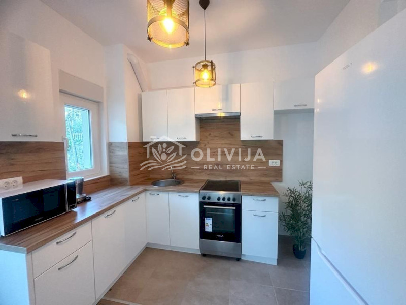 Nekretnina je renovirana prirodnim materijalima. Podovi od prirodnog drveta, moderna kuhinja opremljena mašinom za pranje sudova i kuhinjskom opremom, elegantan nameštaj u svetlim bojama stvaraju prijatan i svetao ambijent.