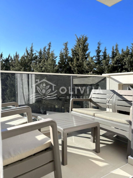 Ukupna površina je 57 m². Struktura: 1 spavaća soba, dnevna soba, spojena sa kuhinjom, kupatilo i terasa.