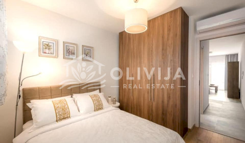 Структура: 2 спальни, гостиная совмещенная с кухней, ванная комната, терраса с боковым видом на море.