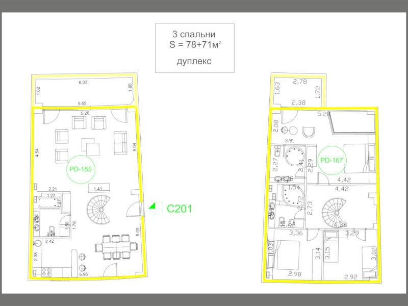 Структура: 3 спальни, гостиная, совмещенная с кухней, 2 ванных комнаты, терраса с видом на море.