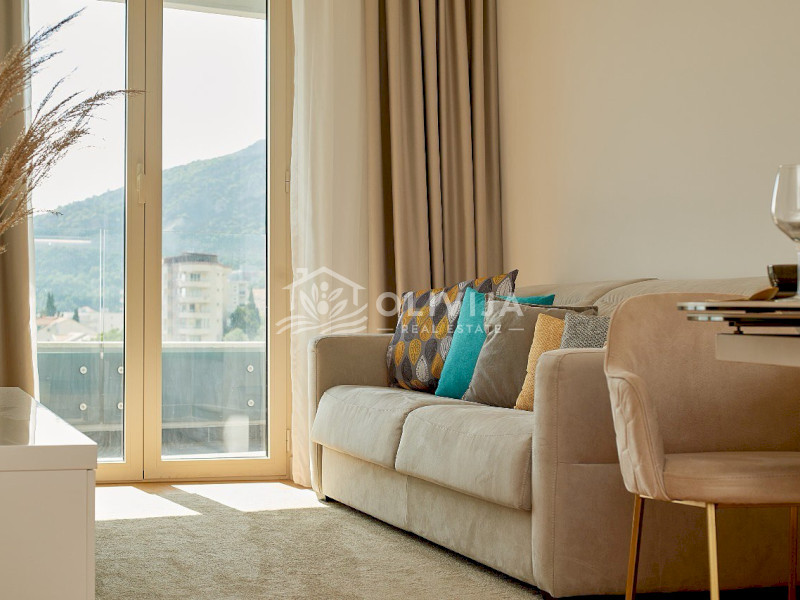 Предлагаем современную квартиру с 2 спальнями в комплексе Skyline Resort в Бечичи — всего несколько минут от пляжа.