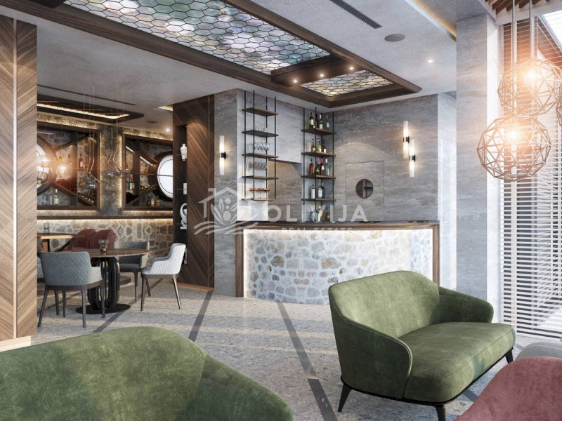 U prizemlju su planirani restoran i šest apartmana, na drugom spratu su četiri apartmana, a na trećem spratu dva prostrana apartmana sa mogućnošću prilagođavanja rasporeda.