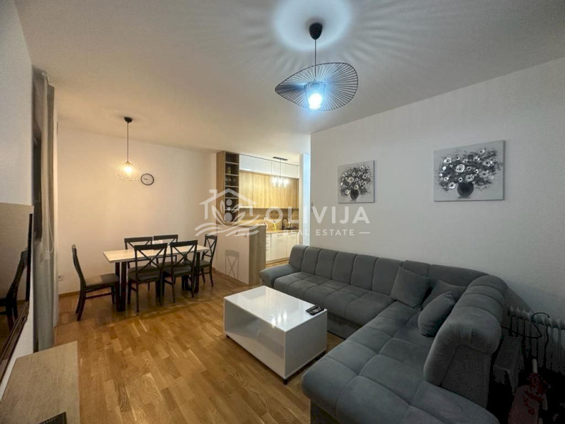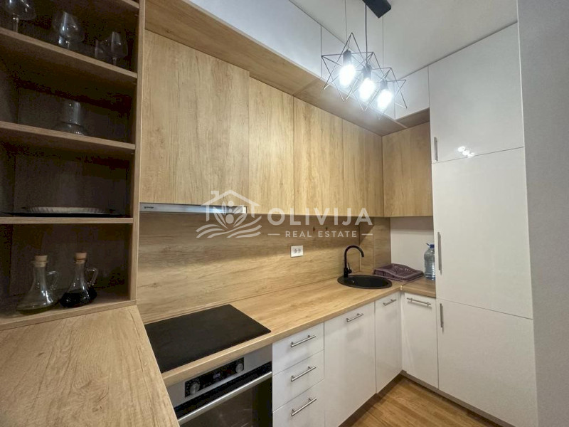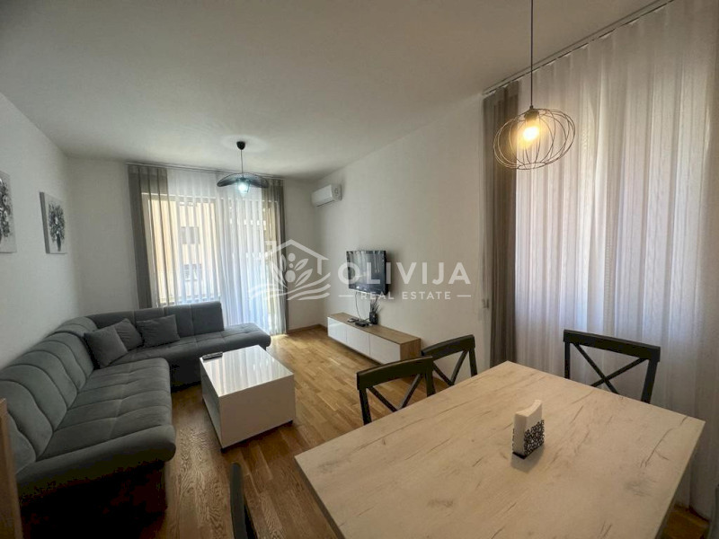 A stylish and cozy apartment is situated on the second floor of a new modern building in Bečići. The distance to the sea is a 5-minute walk. Nearby, you'll find a large supermarket "IDEA," cafes, a fitness center, and educational activities for children. Open-air children's and sports playgrounds are also available.