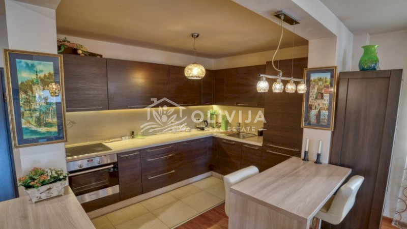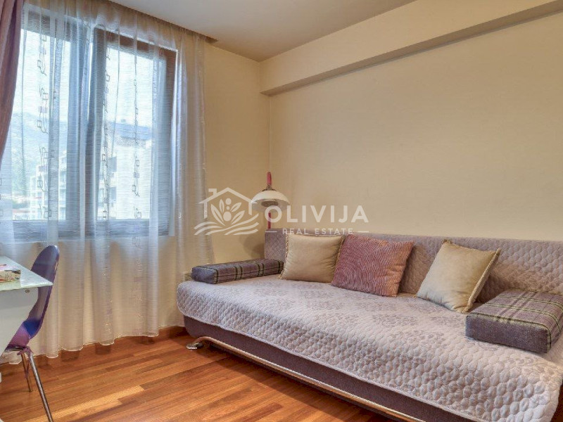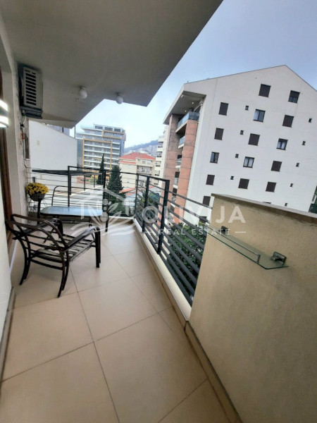 An apartment with two bedrooms is for sale in the heart of Budva, near TQ Plaza, just a five-minute walk from the sea and 10 minutes from the old town.