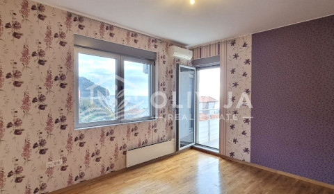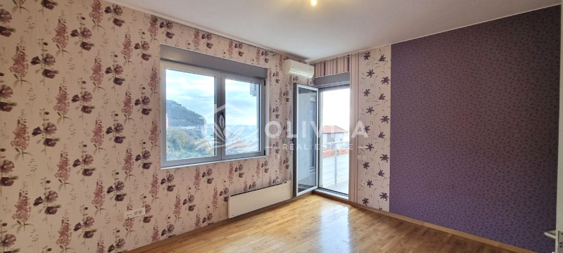 Layout: 2 bedrooms, kitchen, living room, 3 terraces, two of which have a sea view, and the third is glazed with a view of the mountains and olive grove.