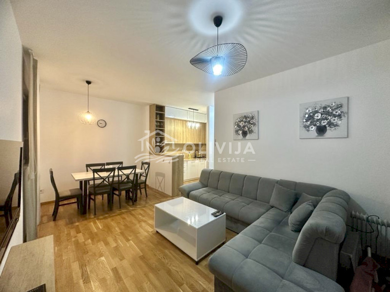 The apartment is equipped with quality furniture and modern appliances.
