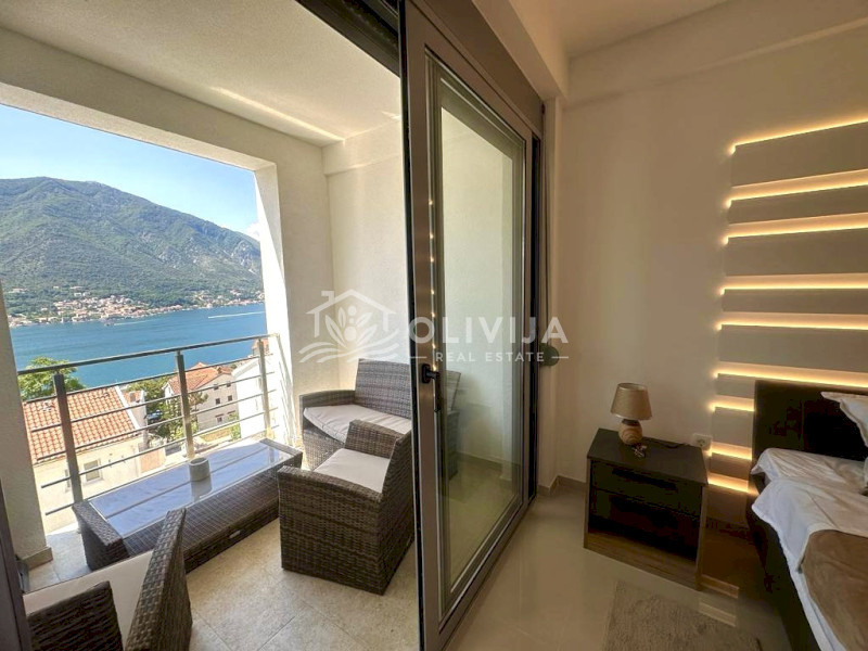 I am offering an apartment for sale in a new building with a stunning view of the bay and mountains.