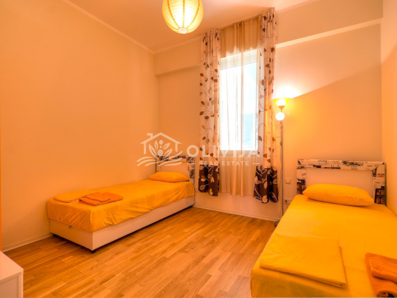 On the left you will find one of the most beautiful beaches of Montenegro - Bečici, which is famous for its immaculate cleanliness;