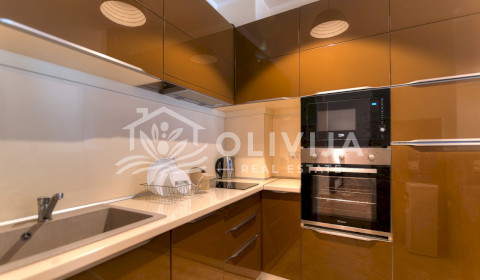The apartment is fully furnished and equipped with household appliances, including air conditioning and smart home system.