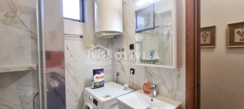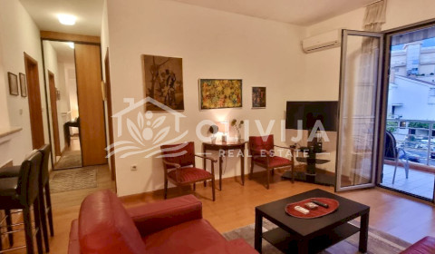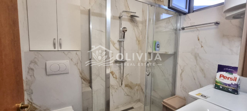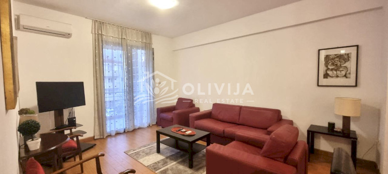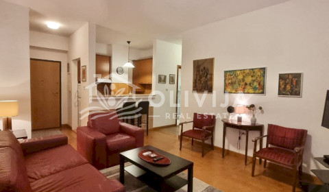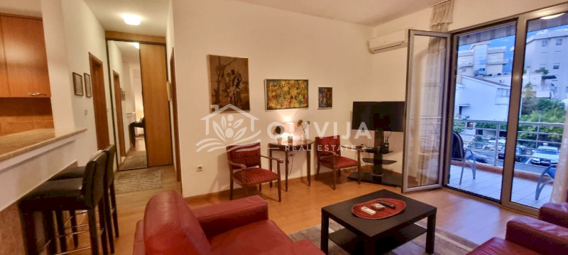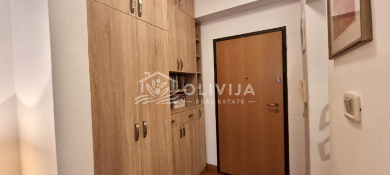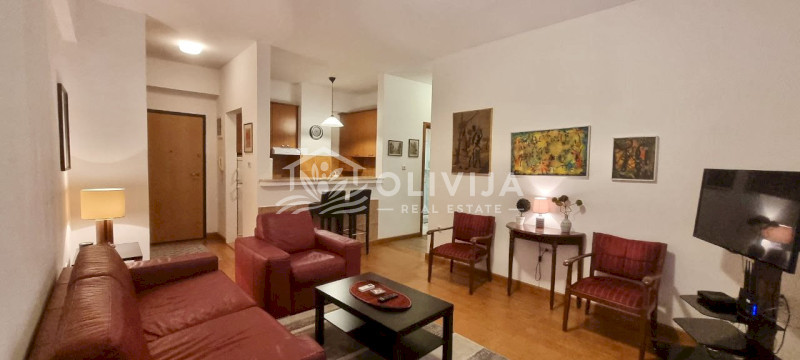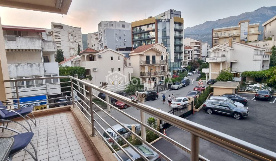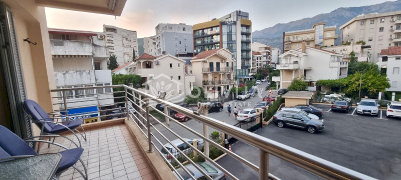 Layout: 1 bedroom, living room, kitchen, bathroom, hallway, large terrace with a city view.