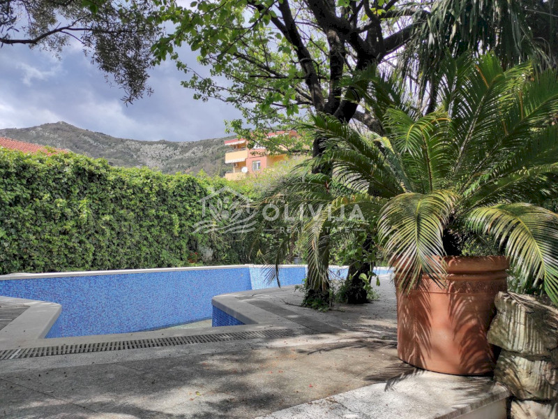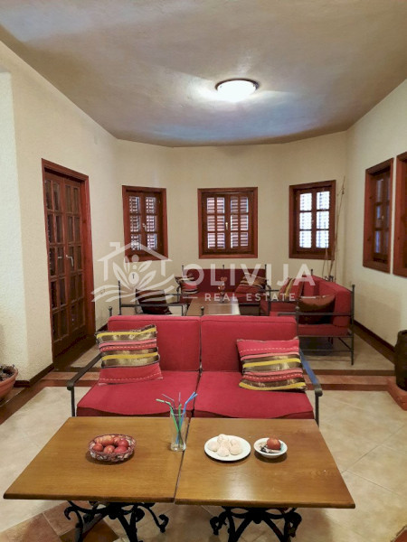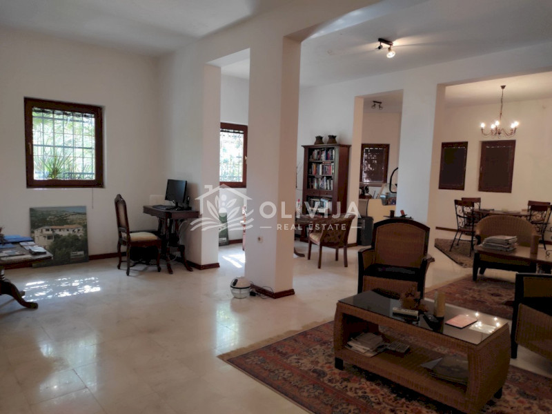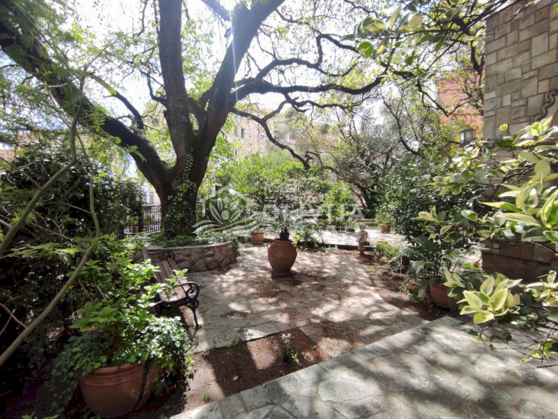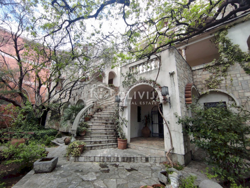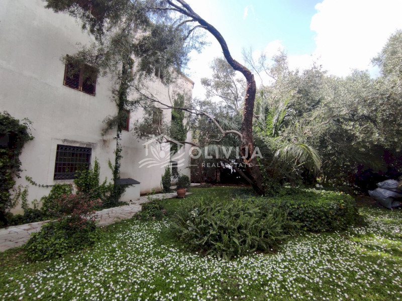 Здание утопает в зелени. Вечно зеленый плющ, старые оливковые деревья, пальмы и олеандры, цветущий сад, зеленый газон и вымощенные из натурального камня дорожки на территории особняка, создают невероятную атмосферу гармонии и умиротворения.
