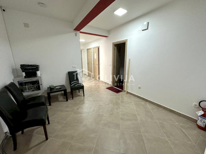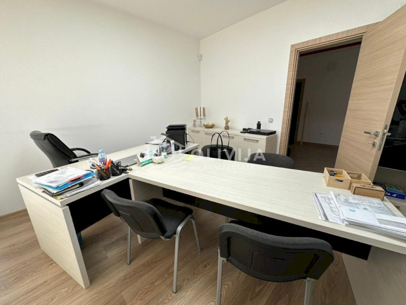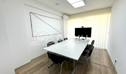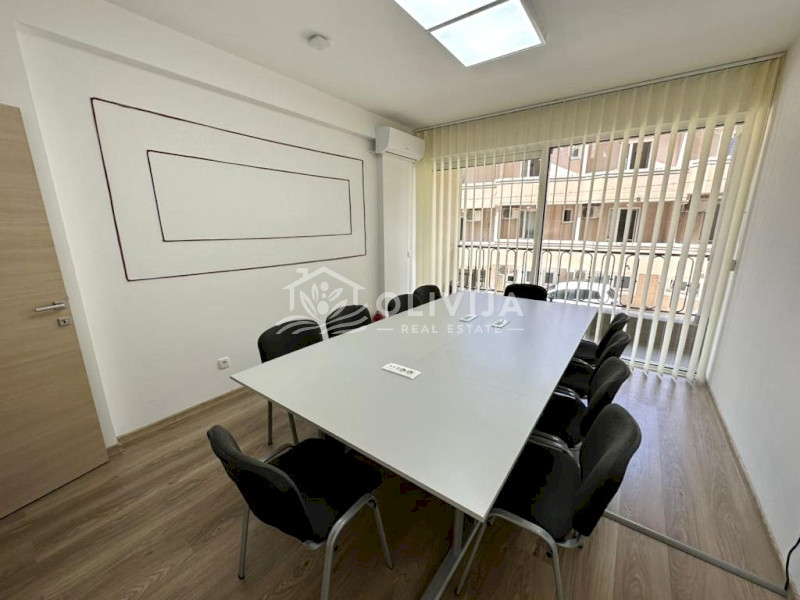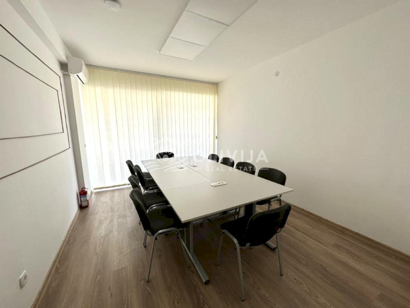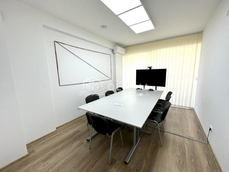 Структура: 4 просторных комнаты, длинный коридор, холл з зоной кухни, переговорная, бойлерная, три санузла.