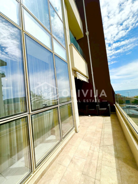 Сдаётся современная квартира с видом на море в одном из лучших районов Бечичей, всего в 100 метрах от пляжа и напротив известного отеля Splendid.