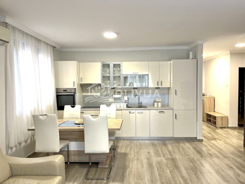 Предлагается в аренду просторная квартира в жилом комплексе с бассейном, расположенном в Пржно, всего в 250 метрах от пляжа и рядом с русскоязычной школой «Компас».