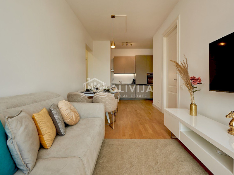 Предлагаем современную квартиру с 2 спальнями в комплексе Skyline Resort в Бечичи — всего несколько минут от пляжа.