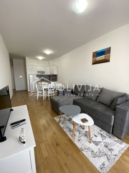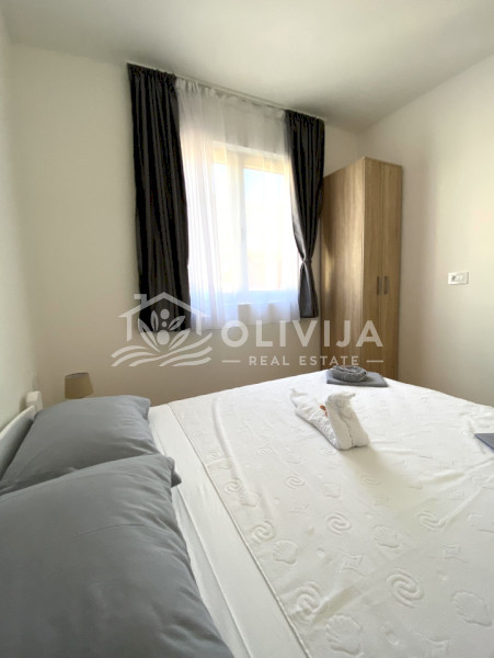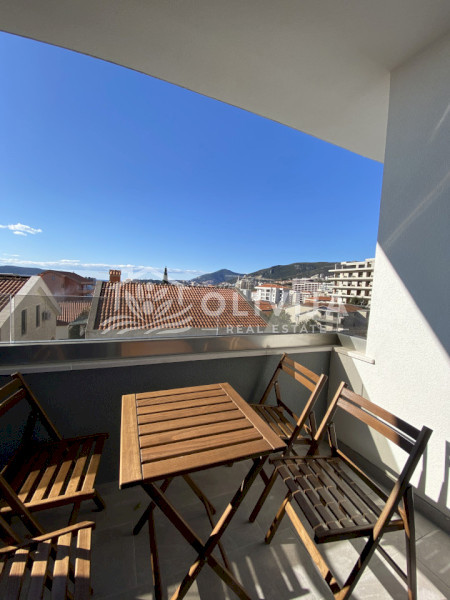 Площадь квартиры составляет 60 м², из окон и с террасы открывается вид на море.
