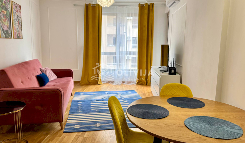 Квартира расположена в новом современном доме WOW в районе с развитой инфраструктурой, где в шаговой доступности находятся рестораны, супермаркеты Idea и Mix Markt, а также тренажёрный зал Status.